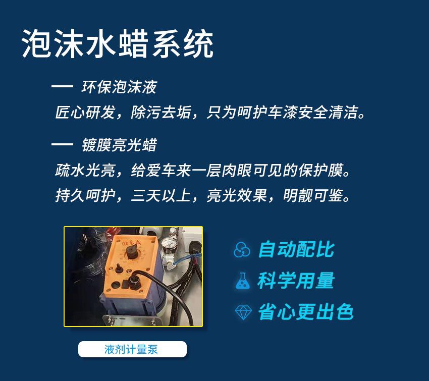 本款設(shè)備既能快速洗車,又能連續(xù)式洗車,每小時可實現(xiàn)50-60輛車的清洗能力,她的引進,大大的滿足了有較大營業(yè)場地,洗車量大的客戶的需求,現(xiàn)在有許多日洗車量在500輛以上的客戶,都在使用這款設(shè)備。